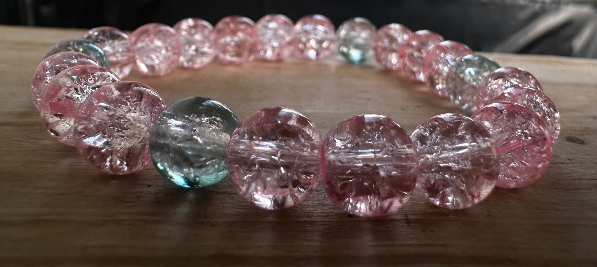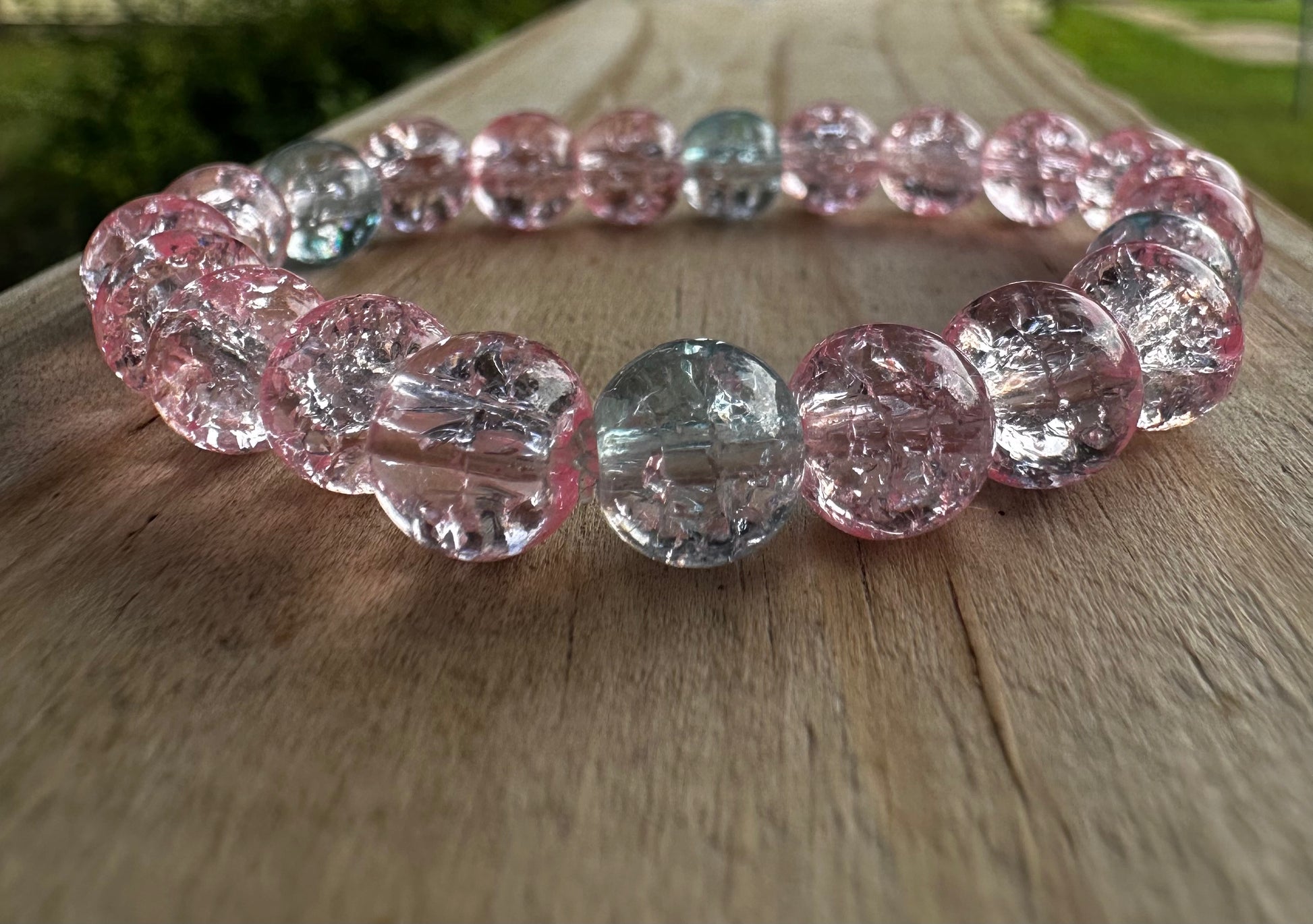 Playful and full of charm, Bubble Pop brings a burst of color with light pink and sky blue glass beads that feel sweet, airy, and a little nostalgic. Like candy for your wrist.