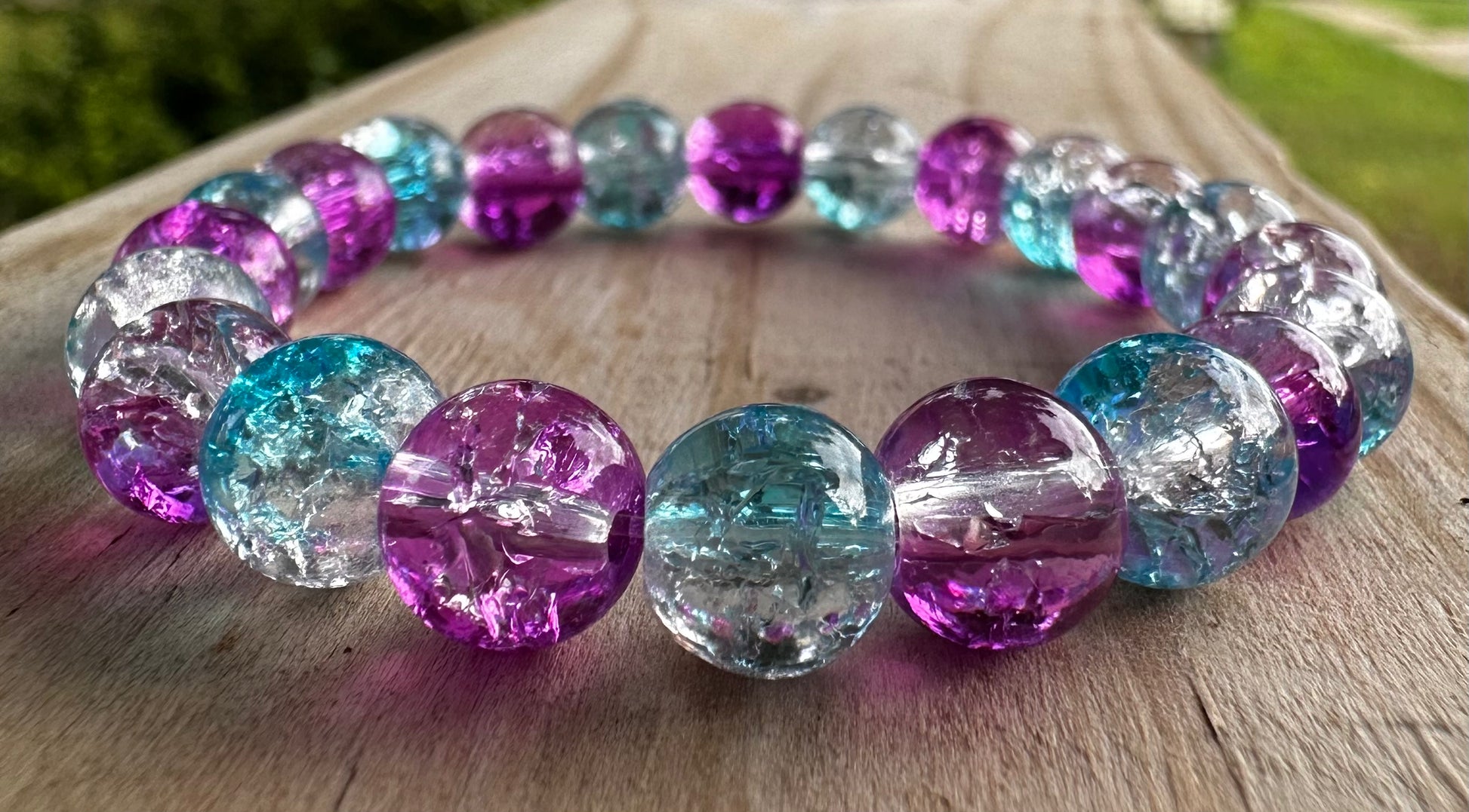 A swirl of light blue and violet glass, Nebula Dream captures the quiet magic of distant galaxies. Ethereal yet grounded, this bracelet radiates a calm, cosmic energy.